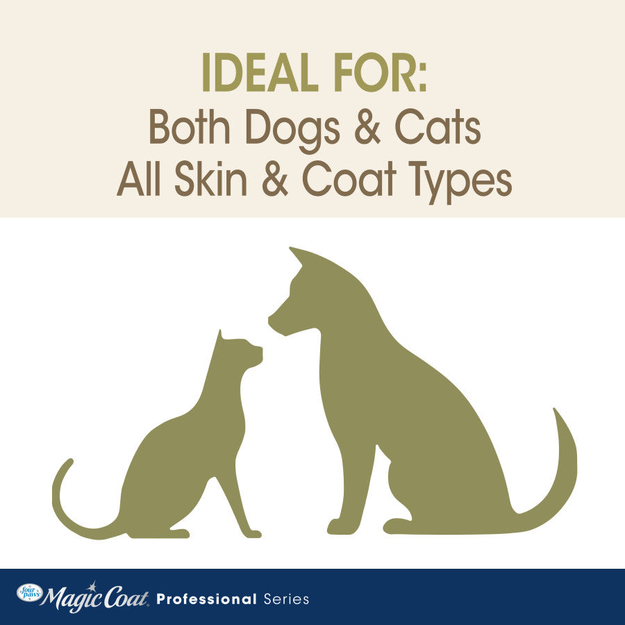 Four Paws has been simplifying at-home pet grooming with the highest-quality tools and products for over 50 years. Provide your dog a luxurious at-home grooming experience with Magic Coat Professional Series Nourishing Oatmeal De-Shedding Dog Shampoo! Enriched with oatmeal to relieve itchiness, this dog shampoo is enhanced with protein to help strengthen the coat and minimize shedding. Formulated with a pH-balanced blend of coconut- and plant-based ingredients, this almond vanilla-scented shampoo is free of DEA, MEA, phthalate, parabens, dye, sulfates, alcohol, soap, and silicone. Use this USA-made shampoo on any coat type—including cats!