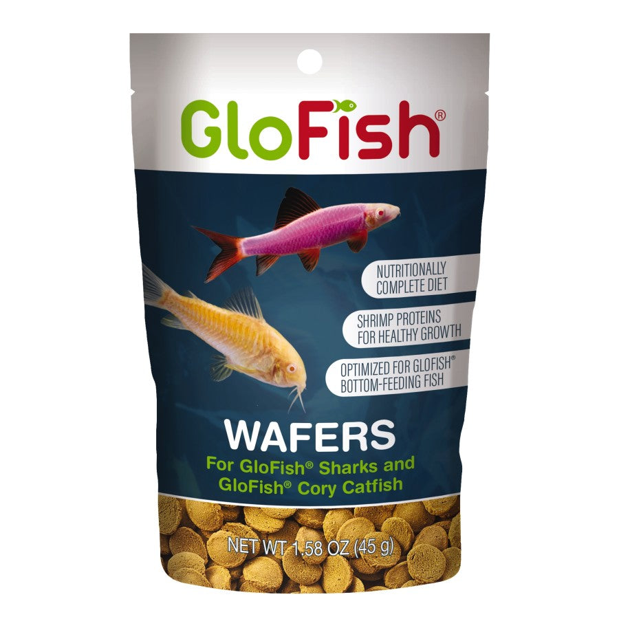 Re-sealable pouch packaging creates differentiation on shelf vs. other GloFish tins. Nutritionally complete diet with shrimp proteins for healthy growth.