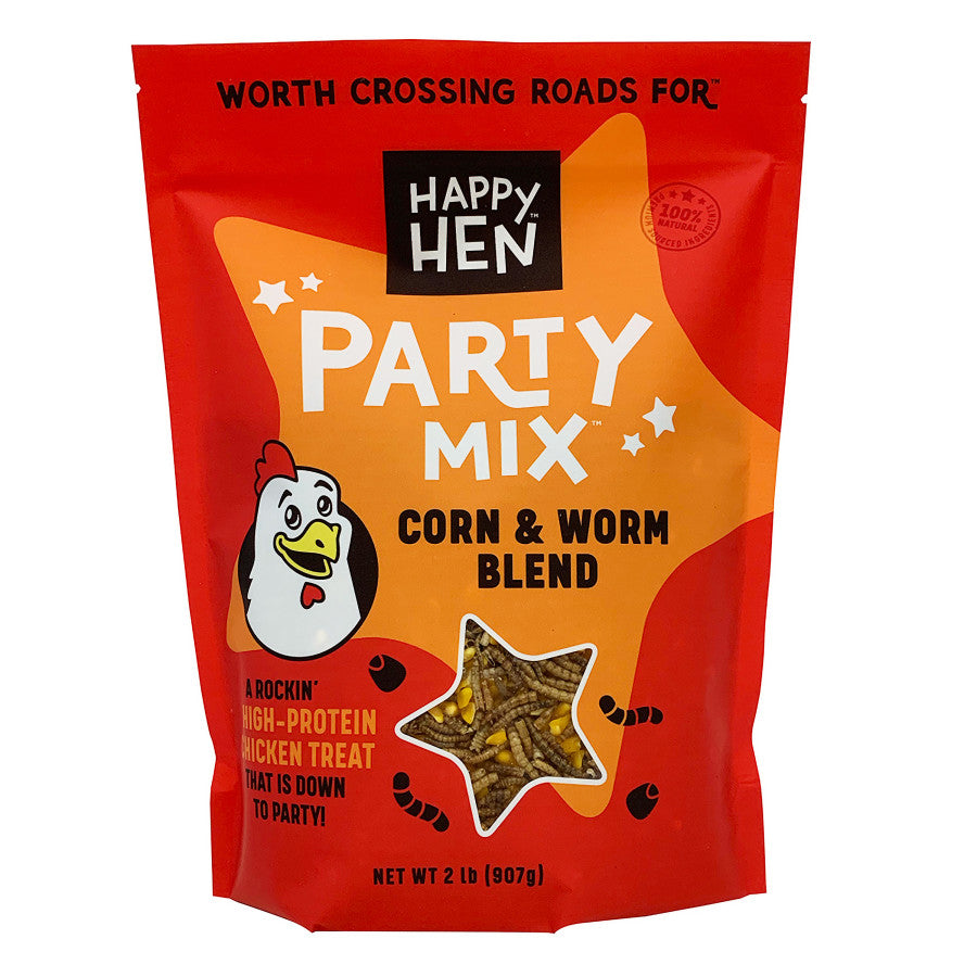 Get the Party started and keep your chickens happy with this fun and nutritious mealworm and corn mix. Perfect treat for training or taming chickens. 2# re-sealable zip-lock bag to preserve freshness.