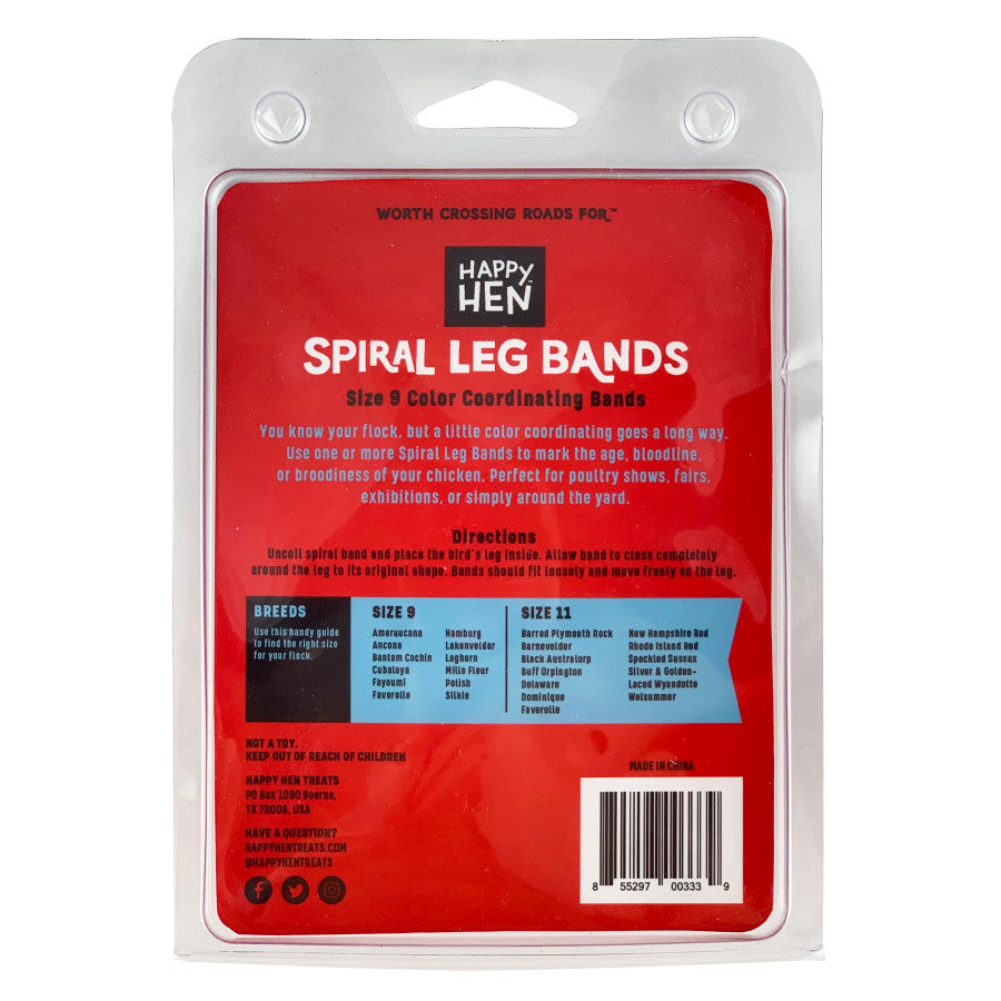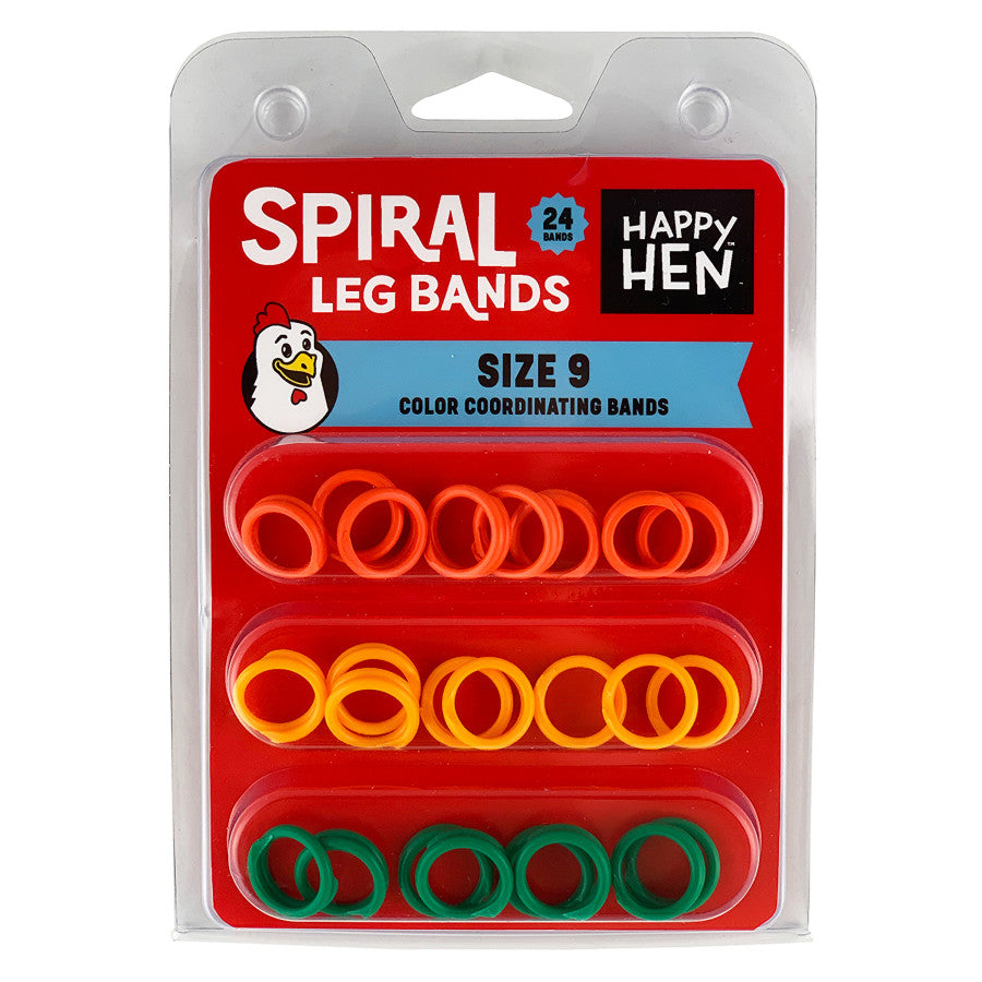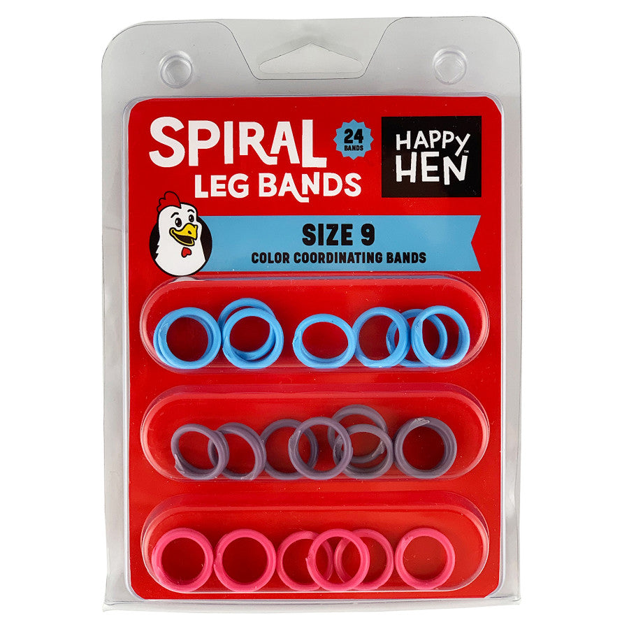 Happy Hen spiral leg bands make identification easy. Easy to apply with no tools required. Each pack of 24 leg bands comes in 3 different color combinations. Size 9 recommended for most standard breed hens.