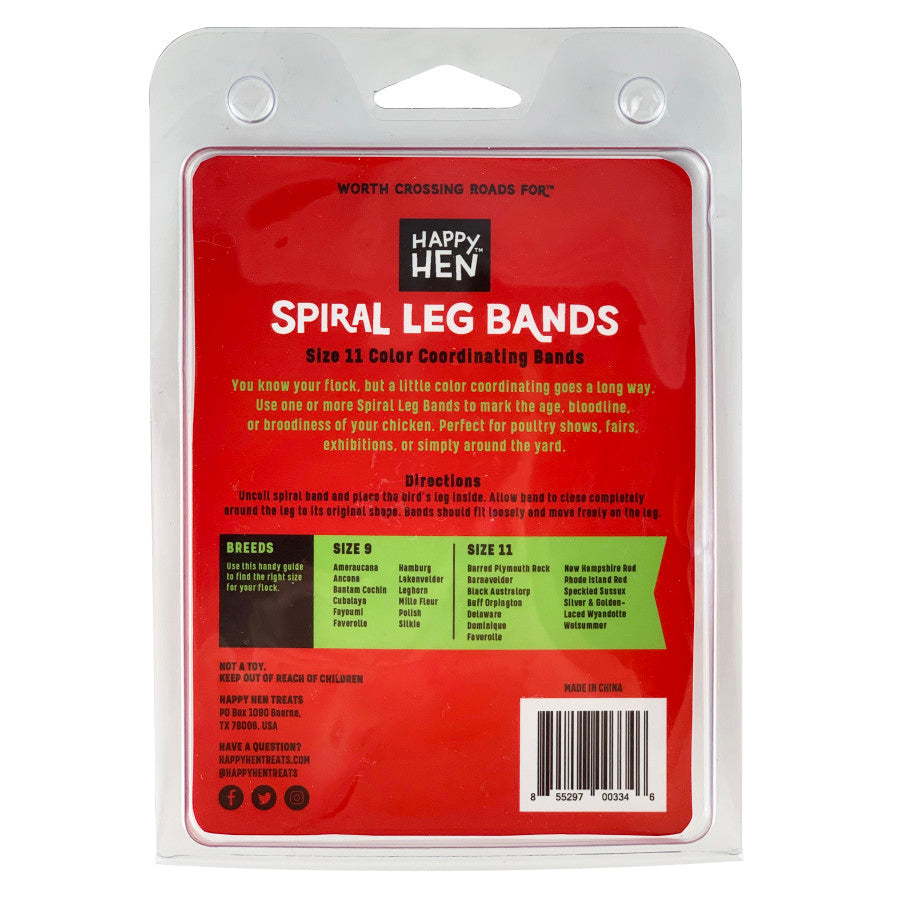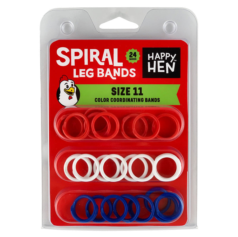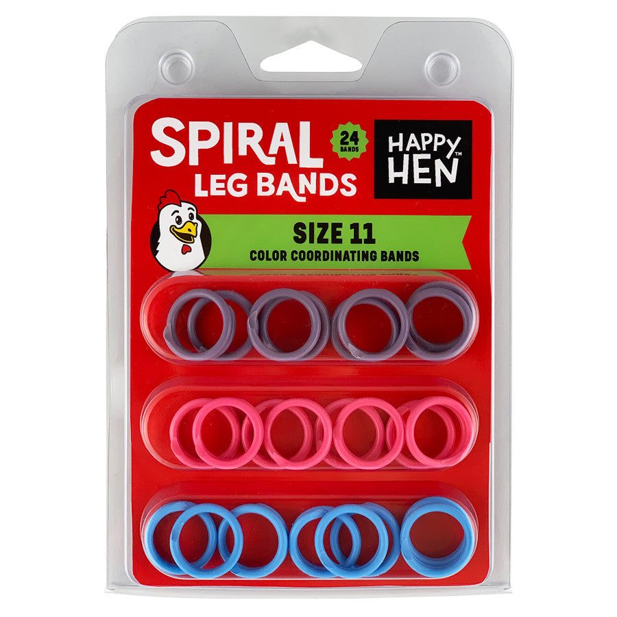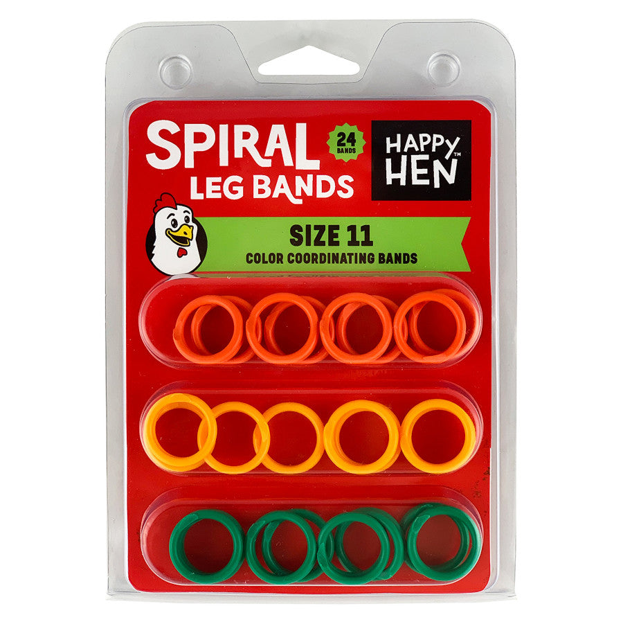 Happy Hen spiral leg bands make identification easy. Easy to apply with no tools required. Each pack of 24 leg bands comes in 3 different color combinations. Size 9 recommended for most standard breed hens.