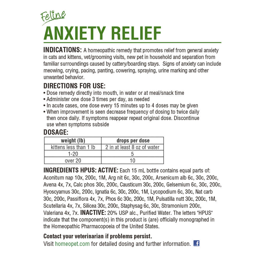 - Behavior Claims: Relief from general anxiety with signs of meowing, crying, pacing, panting, cowering, spraying, urine marking and other unwanted behavior