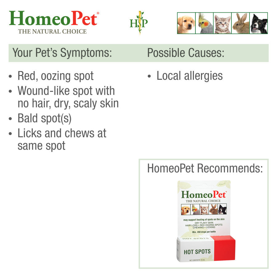 May support healing of spots on your pet’s skin that are red and oozing or dry and flaky; where skin is irritated or there is hair loss from chewing and licking.