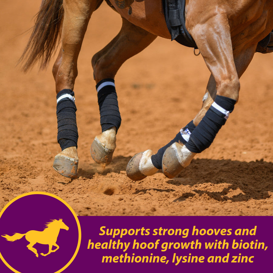 - Hoof health: supports strong hooves and healthy hoof growth with 16 mg. of biotin per 2 oz serving