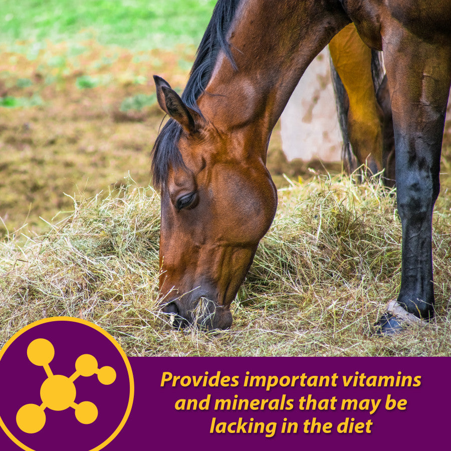 - Provides solid nutritional support to keep horses looking & feeling their best
