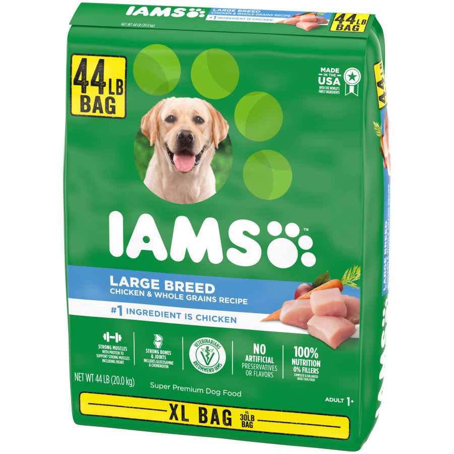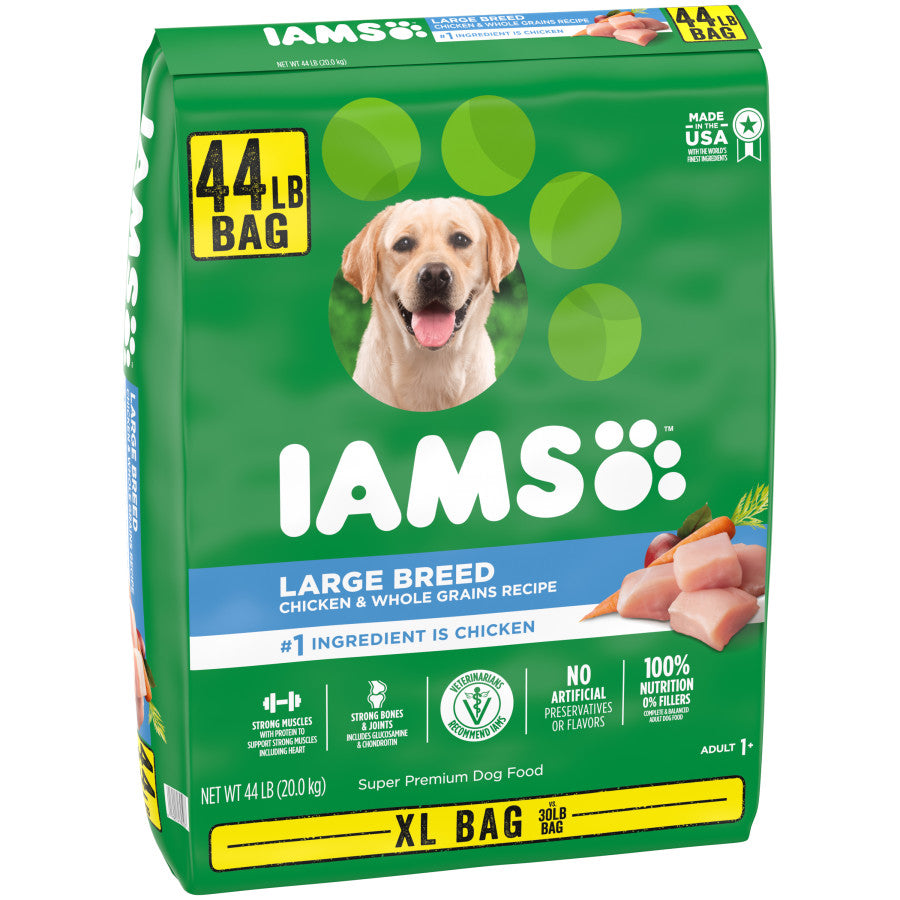 - Contains one (1) 44 lb. bag of IAMS Adult Large Breed Dry Dog Food for Large Dogs with Real Chicken