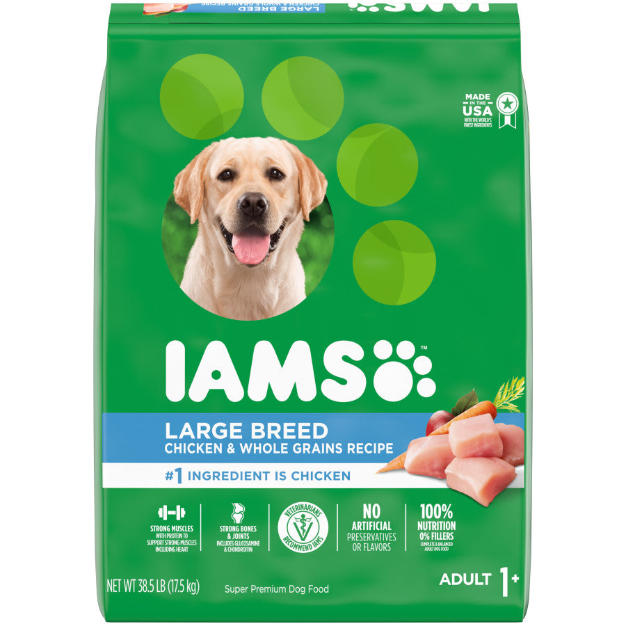 - Contains one (1) 38.5 lb. bag of IAMS Adult Large Breed Dry Dog Food for Large Dogs with Real Chicken
