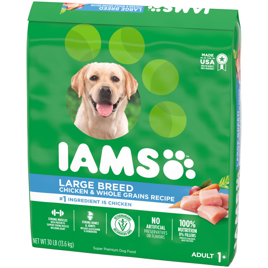 - Contains one (1) 30 lb. bag of IAMS Adult Large Breed Dry Dog Food for Large Dogs with Real Chicken