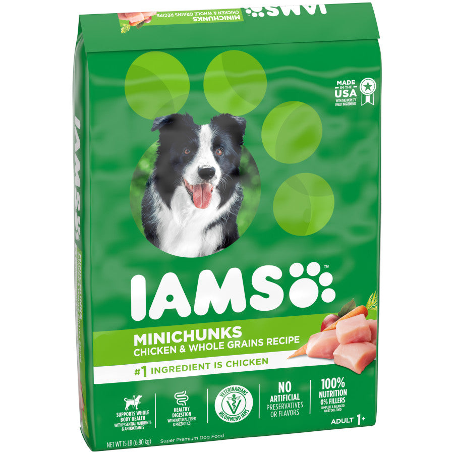- Contains one (1) 15 lb. bag of IAMS Adult Minichunks Small Kibble Dry Dog Food with Real Chicken