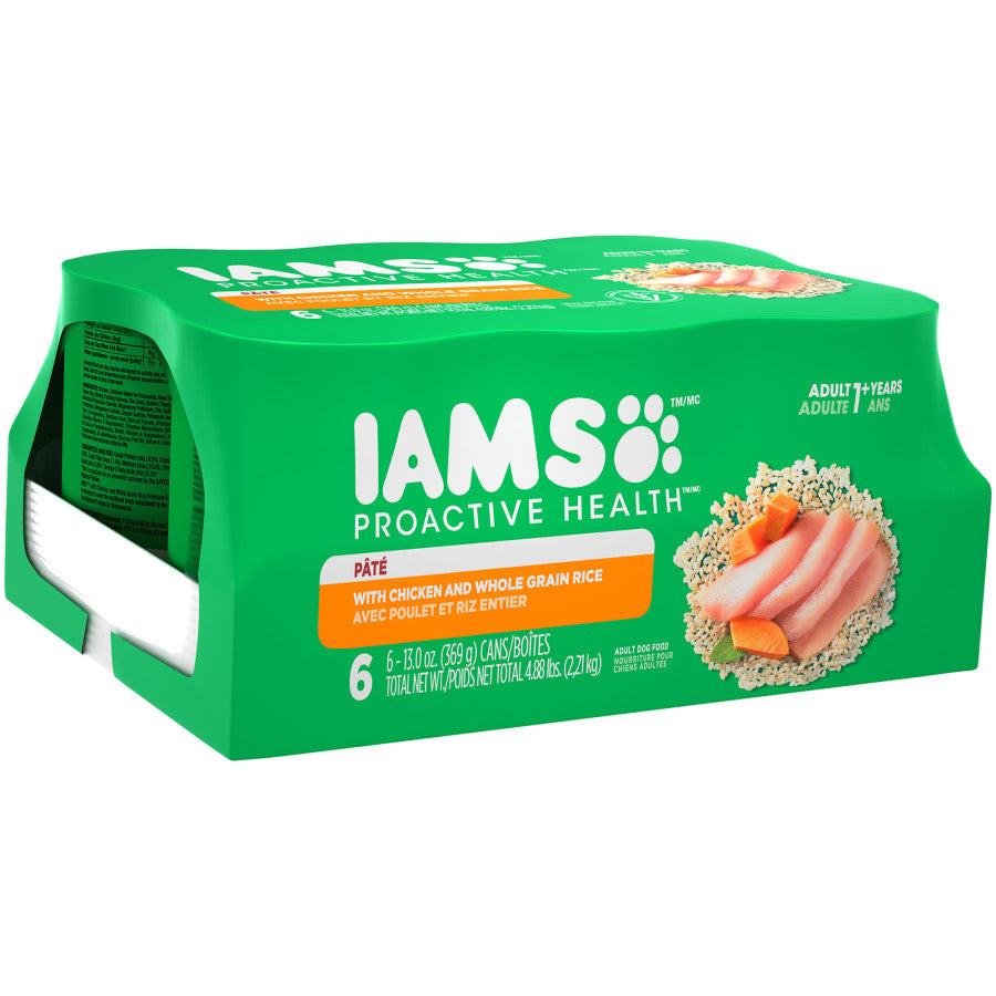 - Contains six (6) 13.0-oz. cans of IAMS PROACTIVE HEALTH Adult Multipack With Chicken and Whole Grain Rice Pate Wet Dog Food