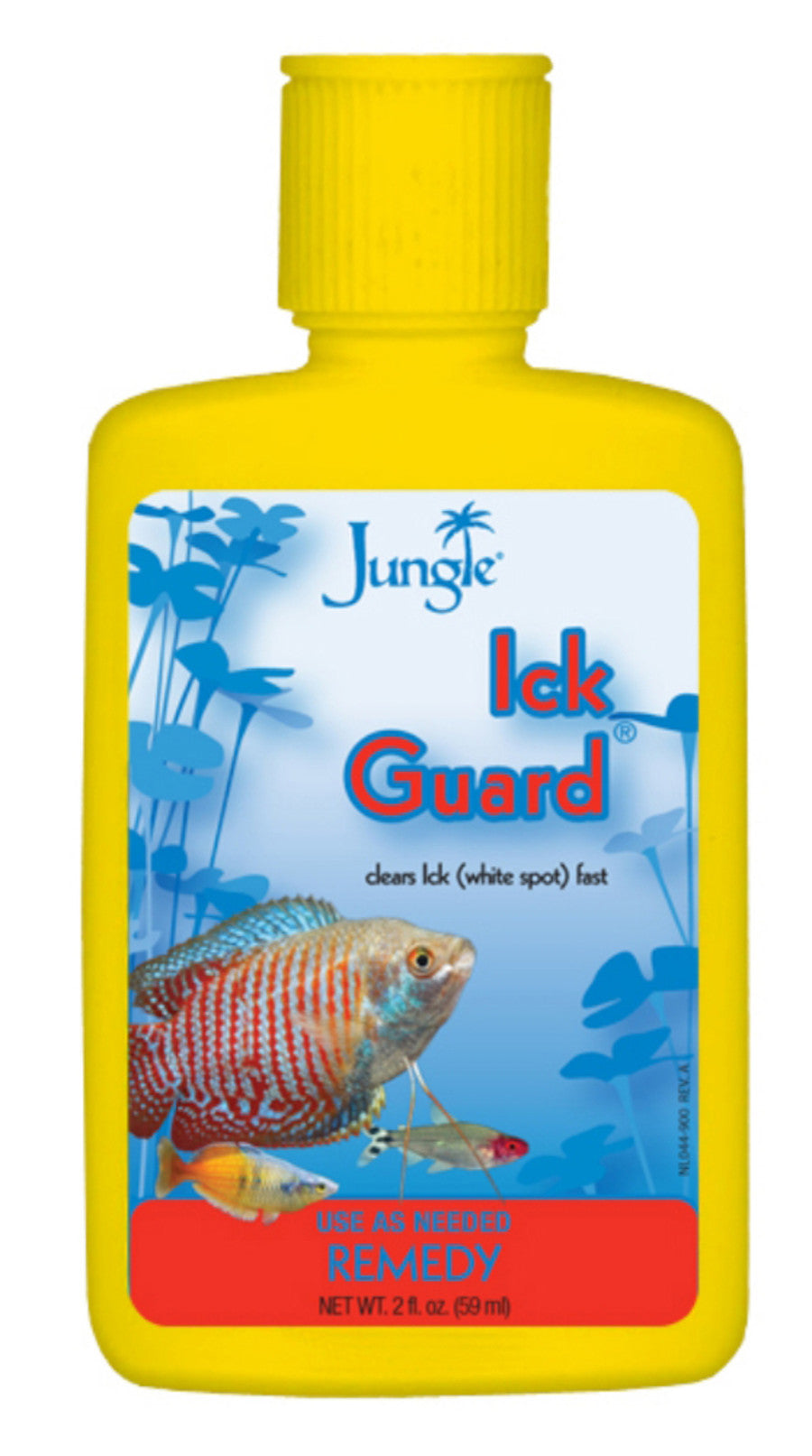 Ick Guard (Liquid) Clears Ick Fast, Also guards against secondary infections as a result of wounds left by the ick parasite. No need to raise the water temperature. Use Ick Guard II on small, weak or scaleless fish. Use half strength on Tetras or small fish, or use Ick Guard II. Remove activated carbon during use. After 24 hours, change 25% of the water and dosage may be repeated if needed. No need to remove snails. 2 oz. (59 mL),1 tsp./10 U.S. gal. (5 mL/40 L),120 U.S. gal. (450 L)