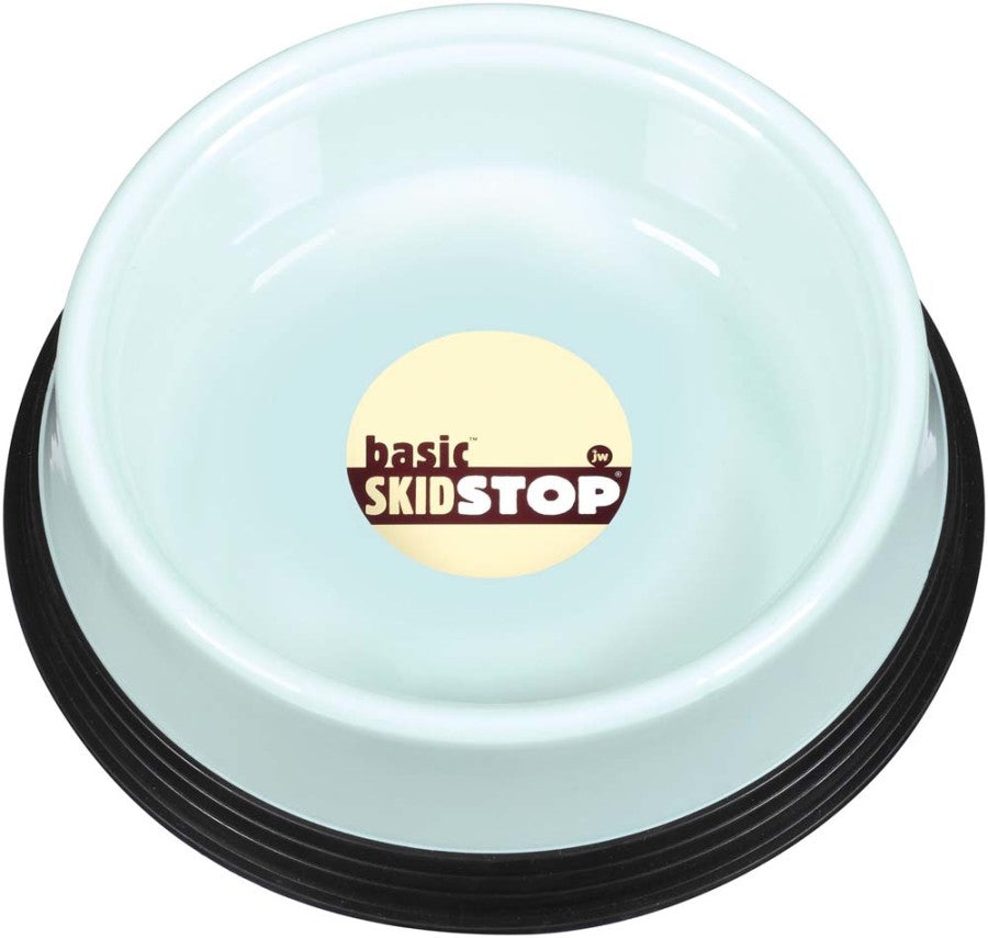The JW® Skid Stop® Basic Bowl is an everyday plastic pet bowl that is designed to effectively hold your pet's food or water. Features a skid stop rubber base that prevents your pet's dish from moving around on the floor during meal time. Excellent way to prevent messy spills before they happen. Easy-to-clean, stain-resistant plastic and thermoplastic heavy-duty rubber rim make this the ideal bowl for your pet. Skid Stop Bowls are dishwasher safe and rust and bacteria resistant. Pet parents choose from an assortment of sizes to fit your pet's needs. Ships in random assorted colors.