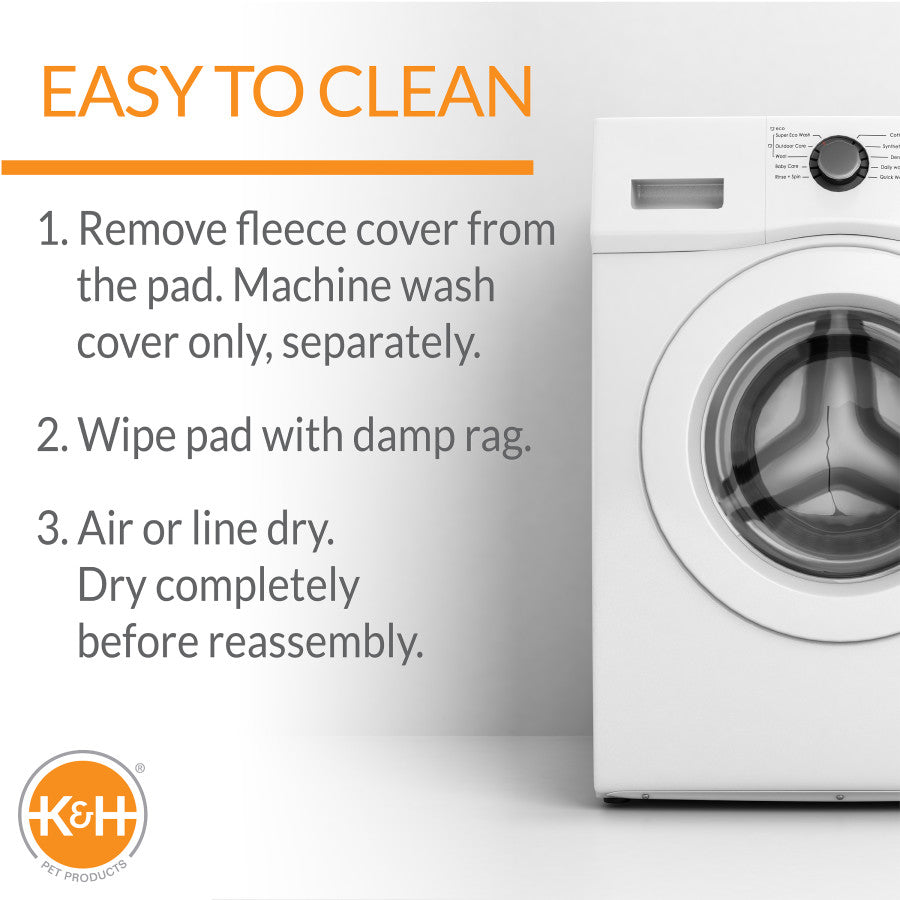 - Safety Warnings: DO NOT cover this heated pad with materials, bedding, or covers other than the K&H cover that is designed for this pad. Not intended for use by children. Pets can chew items unexpectedly. Remove product immediately if torn or damaged. Seek veterinary attention if any non-food materials are ingested by your pet.