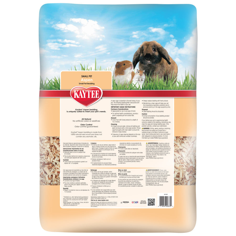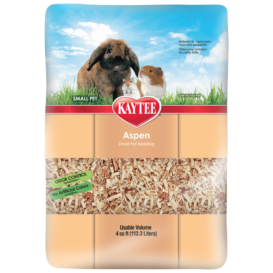 Kaytee Aspen Bedding is manufactured with all natural aspen shavings specially processed to eliminate dust and wood debris found in other bedding. This hard-wood bedding contains no aromatic oils or inks and it can be used in all cages, aquariums and Kaytee CritterTrail products. This bedding is suitable for hamsters, mice, gerbils, rabbits, chinchillas, ferrets and other small animals.