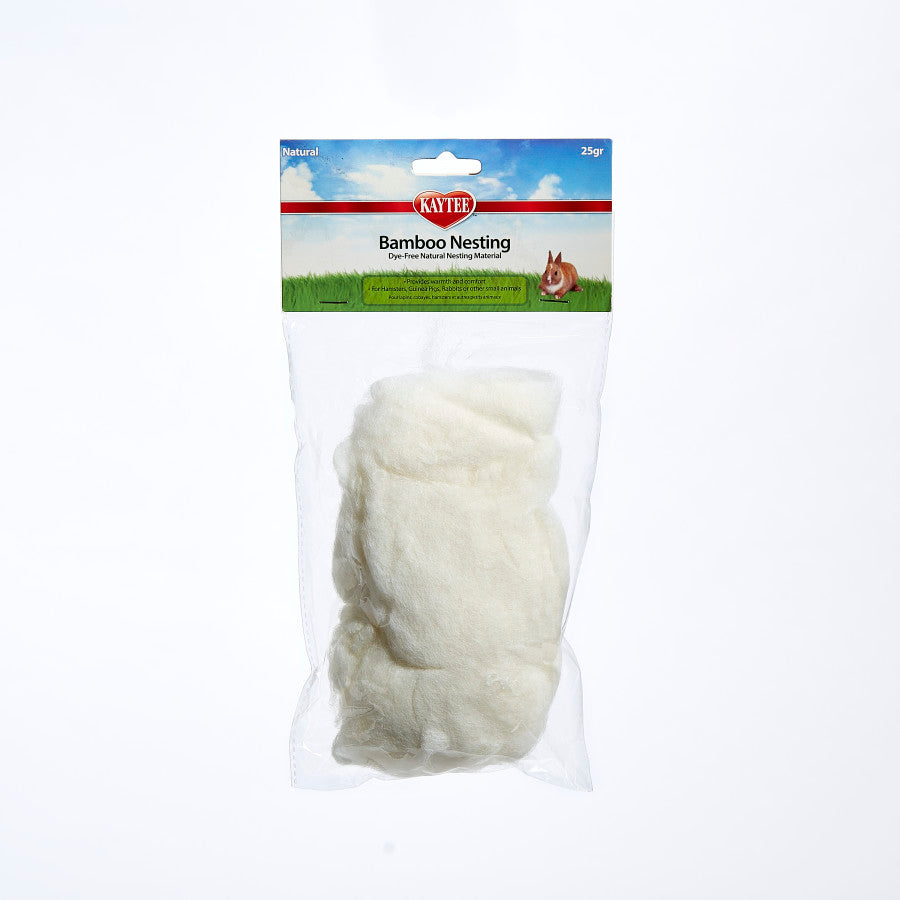Provide your pet with the Natural Nesting Alternative using Kaytee's Bamboo Nesting Material. The fluffy dye-free material will satisfy your pet's natural burrowing instincts and give them material to build a secure nesting spot.