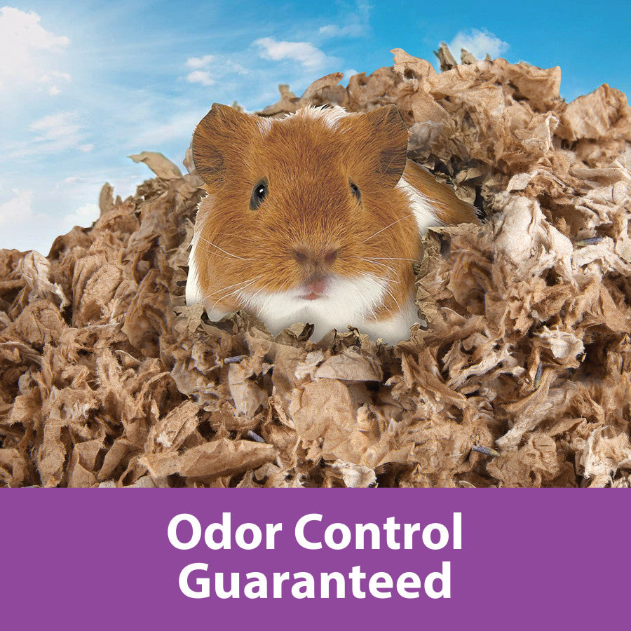 Create an all-natural, snuggly sanctuary for your small pet with Kaytee® Clean & Cozy™ Natural Lavender Bedding. The scent of real lavender buds helps cover odors with every step your pet takes. Because the ingredients are natural — from the scents to the bedding — you'll feel good knowing you're making an environmentally conscious choice. And you'll be comfortable letting your pet nest, burrow and play in the soft and cozy paper. The bedding's all-natural lavender buds are safe for your pet and soothing for you. And this is just the beginning of what makes this brand stand out. Kaytee® Clean & Cozy™ Natural Lavender Bedding uses zero artificial scents and is made from safe, all-natural, premium paper. Every ingredient is exactly what an Earth-loving pet parent would want. In contrast, other products use an inferior paper by-product known as sludge. Because we use paper and scents that don't contain harmful chemicals or by-products, you can rest easy knowing your pet will be both cozy and safe. It's paper you would feel comfortable using, so you'll feel comfortable letting your pet nest and burrow in it too. Using high-quality paper means our Natural Lavender bedding is highly absorbent — it absorbs five times its weight in liquid and expands to three times its size. Plus, it's easy to scoop and discard. Absorbent bedding gives you peace of mind knowing your pet won't develop respiratory issues from a smelly habitat. Instead, your pet will sleep soundly in comfy bedding that's 99.9% dust free. And our premium, super-absorbent bedding comes with a money-back, odor-control guarantee.