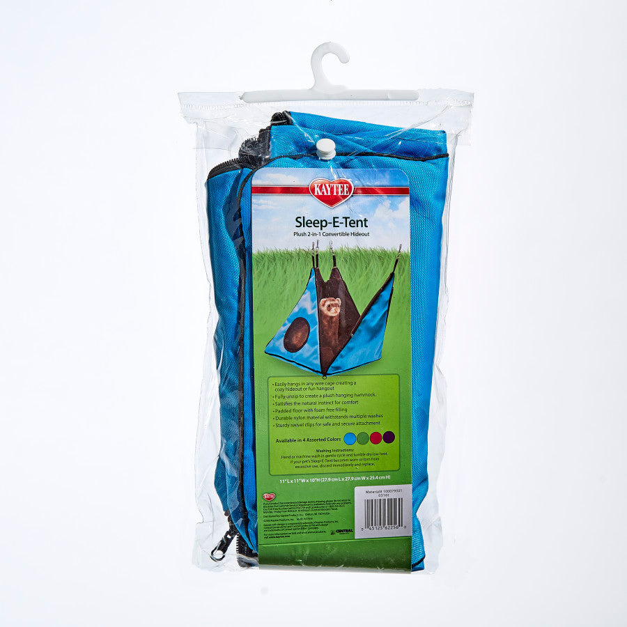 Campout with your Critters! Kaytee Plush Sleep-E-Tent is a super soft slumber spot with a plush lining to provide your pet with a secure place to play or hide. When zipped, Sleep-E-Tent is a cozy hanging tent-shaped hide-out. When unzipped, Sleep-E-Tent becomes a comfortable hammock. Easily attaches inside any wire home to provide additional layers of living space.