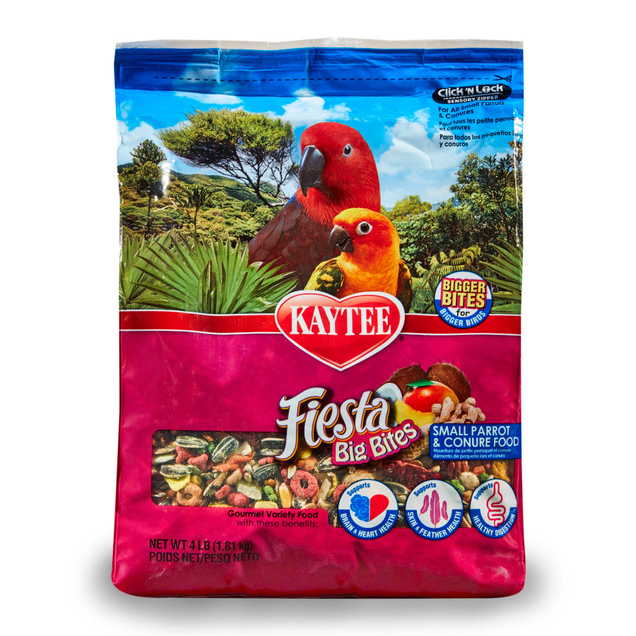 It’s a super-sized party at feeding time with Kaytee Fiesta Big Bites! Made especially for large-billed birds, Kaytee Fiesta Big Bites Small Parrot & Conure Food is a fun-filled, complete diet your bird will love, all while getting the nutrition they need to thrive. Filled with an exciting variety of ingredients, shapes and textures, this bird food blend engages your pet at feeding time and stimulates their natural foraging instincts to keep them from boredom. Kaytee Fiesta Big Bites Small Parrot & Conure Food was formulated by a pet bird nutritionist so that your parrot or conure is getting necessary nutrition in every bite. This is a nutritionally fortified gourmet diet made of a premium blend of fruits, vegetables, seeds and grains offering maximum variety and stimulation for your pet. While they’re loving their meal, you’ll love watching them work through the party of ingredients, shapes and surprises. This blend supports the digestive, brain, skin and feather health of your pet as part of promoting a healthy and happy bird. Sharing your life with a pet is more than just enjoyable, it’s enriching – and Kaytee believes feeding time can be the same. With over 150 years of nutritional experience, it’s no wonder why Kaytee is at the heart of every healthy feeding routine.