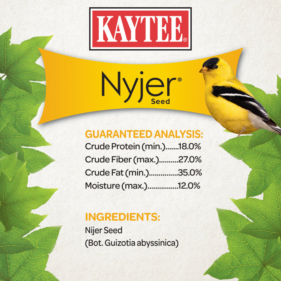 Kaytee Nyjer Seed wild bird food is the premier seed for attracting a variety of small songbirds. Finches, buntings and other small songbirds have smaller beaks, so Nyjer's high oil content and tiny size make it a healthy choice for small backyard birds. Since there are no hulls, there are are no messy leftovers under bird feeders, in yards, flowerbeds or on patios. 100% edible with no hulls, this bite-size and energy-filled seed make Nyjer a favorite among finches and other small songbirds. In fact, Nyjer seed is the best single grain seed for attracting many varieties of finches and small songbirds that have smaller beaks. For best results, use Kaytee Nyjer Seed in a tube or mesh feeder designed for feeding Nyjer, or a Kaytee Mesh Sock Feeder. At Kaytee, we know birds about as well as birds know birds. With over 150 years of experience, we put the finest ingredients and a genuine love of birds into everything we do. Nyjer is a registered trademark of the Wild Bird Feeding Industry.