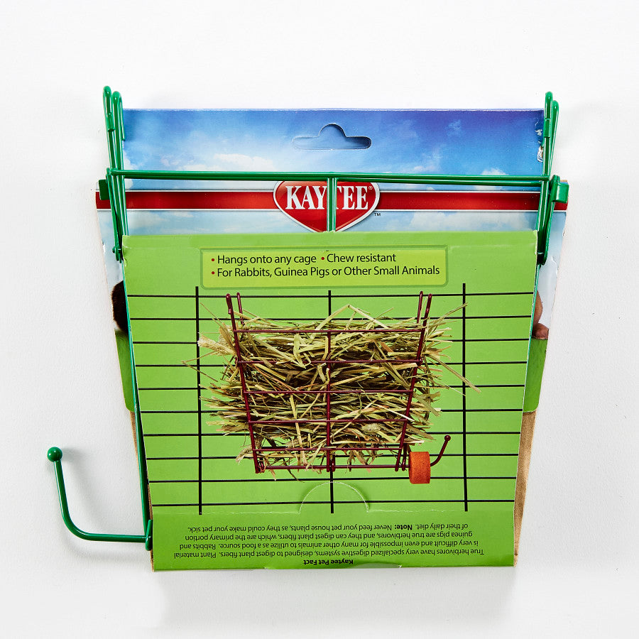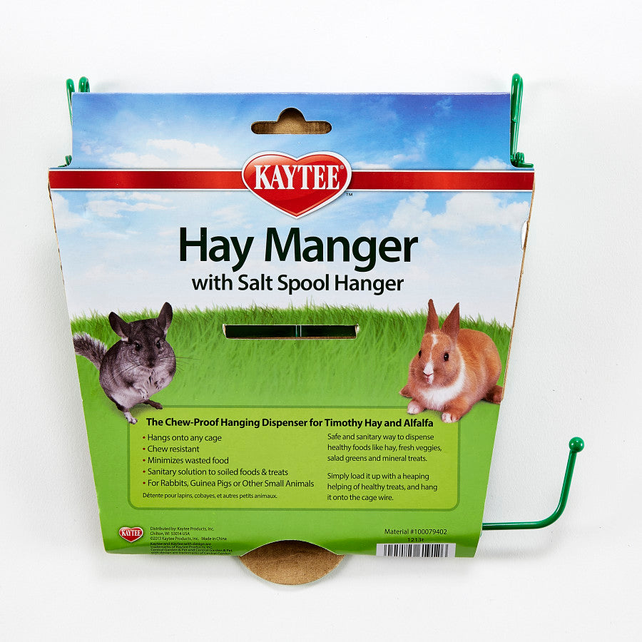 Hay Manger was designed to provide your pet with alfalfa, timothy hay or other fresh vegetables that it naturally craves and needs. Hay Manger attaches directly inside any wire cage at any level that is easy for your pet to access. Hay Manger was designed to keep alfalfa and hay off cage floors where it would become soiled, plus it eliminates wasted food. Hay Manger also comes with a built-in salt spool hanger so you have a sanitary spot for your critter's salt savors.