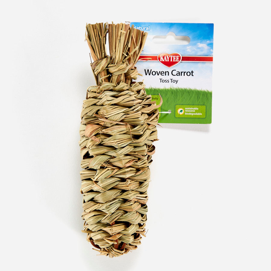 Watch your pet toss and play with the Natural Woven Carrot Toss Toy. Made from natural sisal material, this carrot shaped toy provides pet with much needed playtime and exercise.