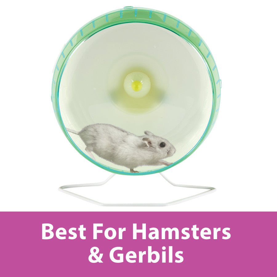 Silent Spinners feature an enclosed spinner hub to reduce noise making them run more quietly than traditional exercise wheels. Silent Spinners work two ways: free standing or attach directly to any wire cage. Features a high-quality plastic running surface is safe and comfortable for your furry friend's feet. Available in sizes mini, regular or giant.