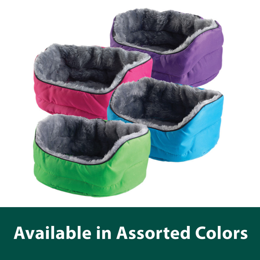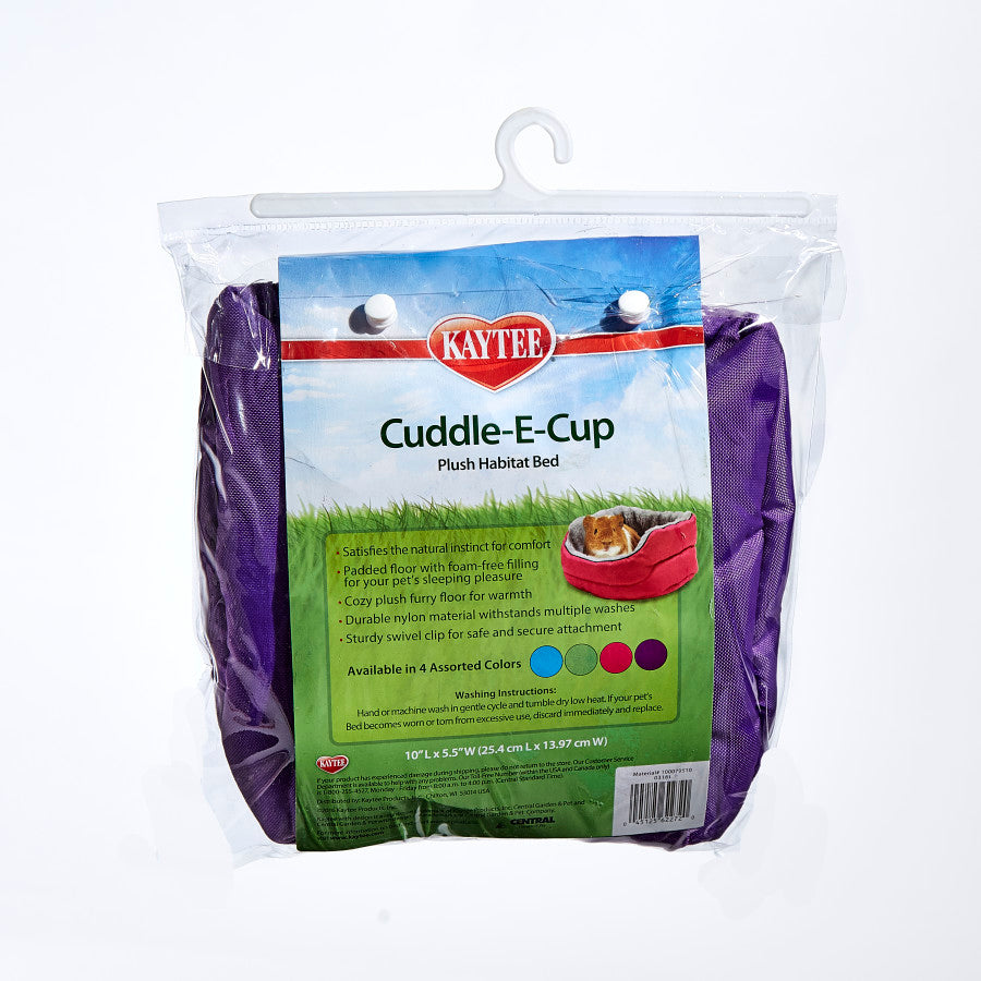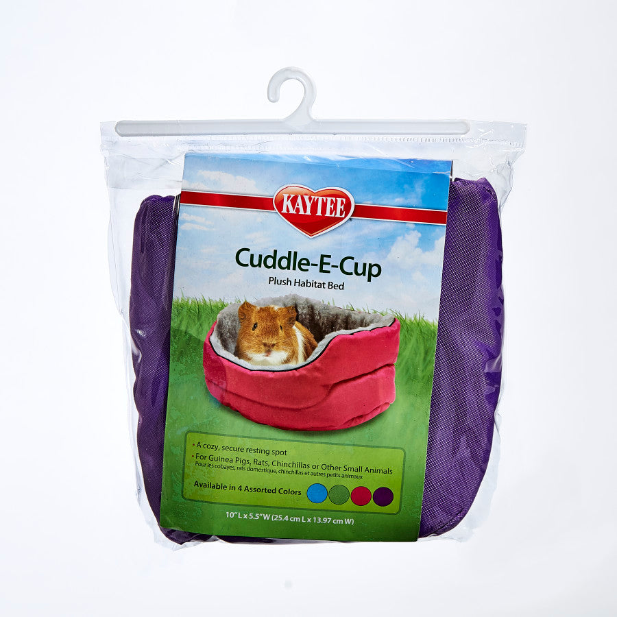 Critters can't wait to curl up in comfort inside Critter Cuddle-E-Cup! The Cuddle-E-Cup features an ultra-soft, padded faux fur interior providing your pet with the ultimate cozy resting spot. Made from durable polyester material, the bed is machine washable. Comes with a strong straps that secures the bed into position anywhere in your pet's cage.