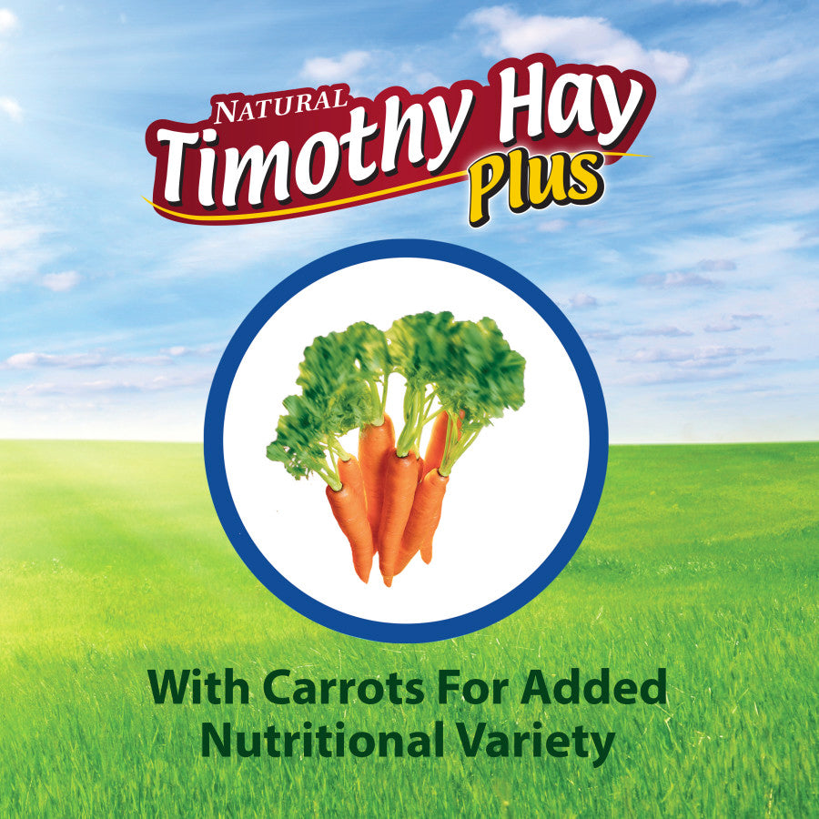 - Natural, long-strand timothy hay plus carrot provides a variety of textures and flavors for added enrichment