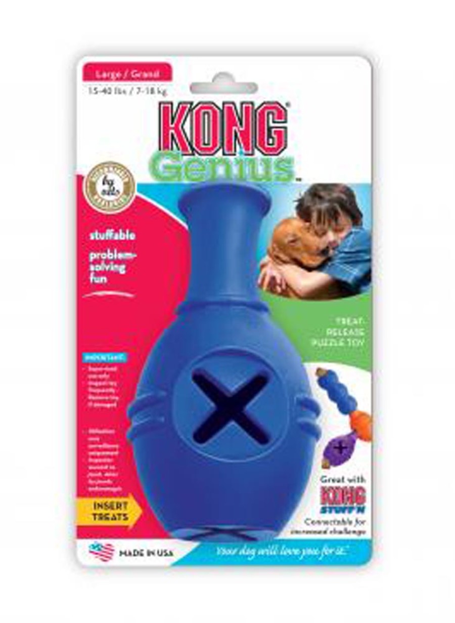 The KONG Genius Leo is named in honor of Leonardo Da Vinci and is designed to stimulate a dog's curiosity and hold its attention. The toy is great for helping combat boredom and separation anxiety and can be used as a treat dispensing toy on its own - or connected to the Genius Mike for an increased challenge. Genius toys are great for puppies and adult dogs alike.