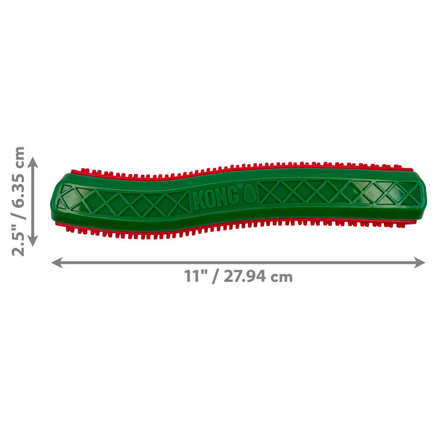 Holiday ChiChewy Zippz Stick’s grooves hold treat paste for a durable toy that satisfies foraging, chewing, and fetching instincts all in one. The deep grooves massage gums and clean teeth as dogs chew, with or without treats. The intriguing mix of textures captivates pups for long bouts of interactive or solo play. Holiday colors make this toy perfect for gift-giving this season.