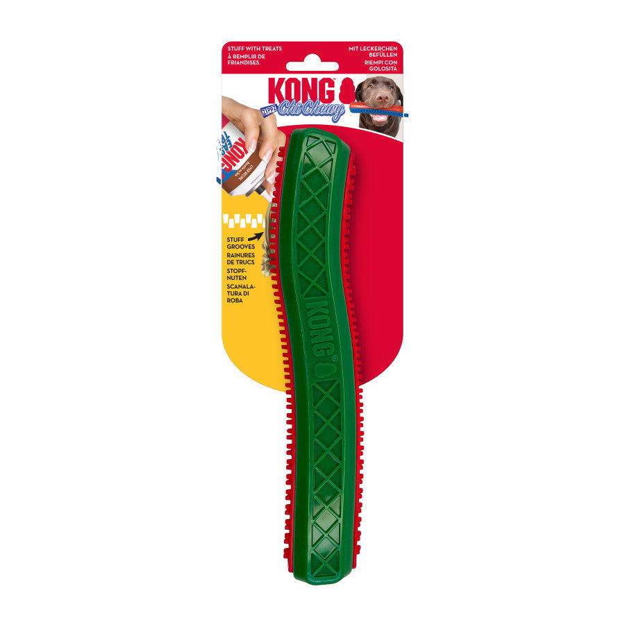 - Holiday ChiChewy Zippz Stick’s grooves hold treat paste for a durable toy that satisfies foraging, chewing, and fetching instincts all in one