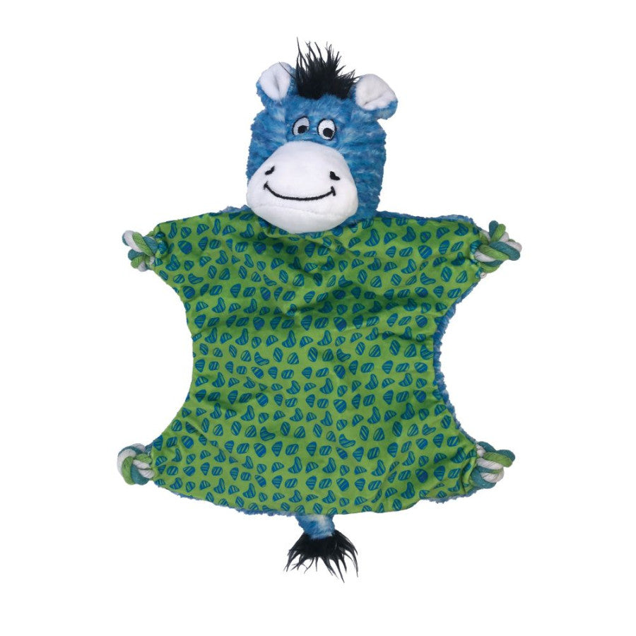KONG Floppy Knots Flatz’s flat, wide body makes the flopping even more fun, satisfying natural instincts with a sturdy, internal knotted rope skeleton. This knotty pal has stuffing only in his head. The squeaker calls dogs to play and keeps the joyful thrashing action going and going!