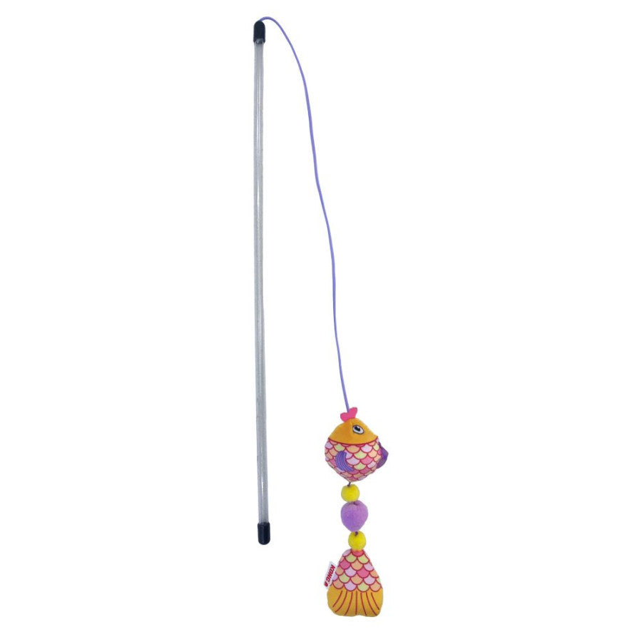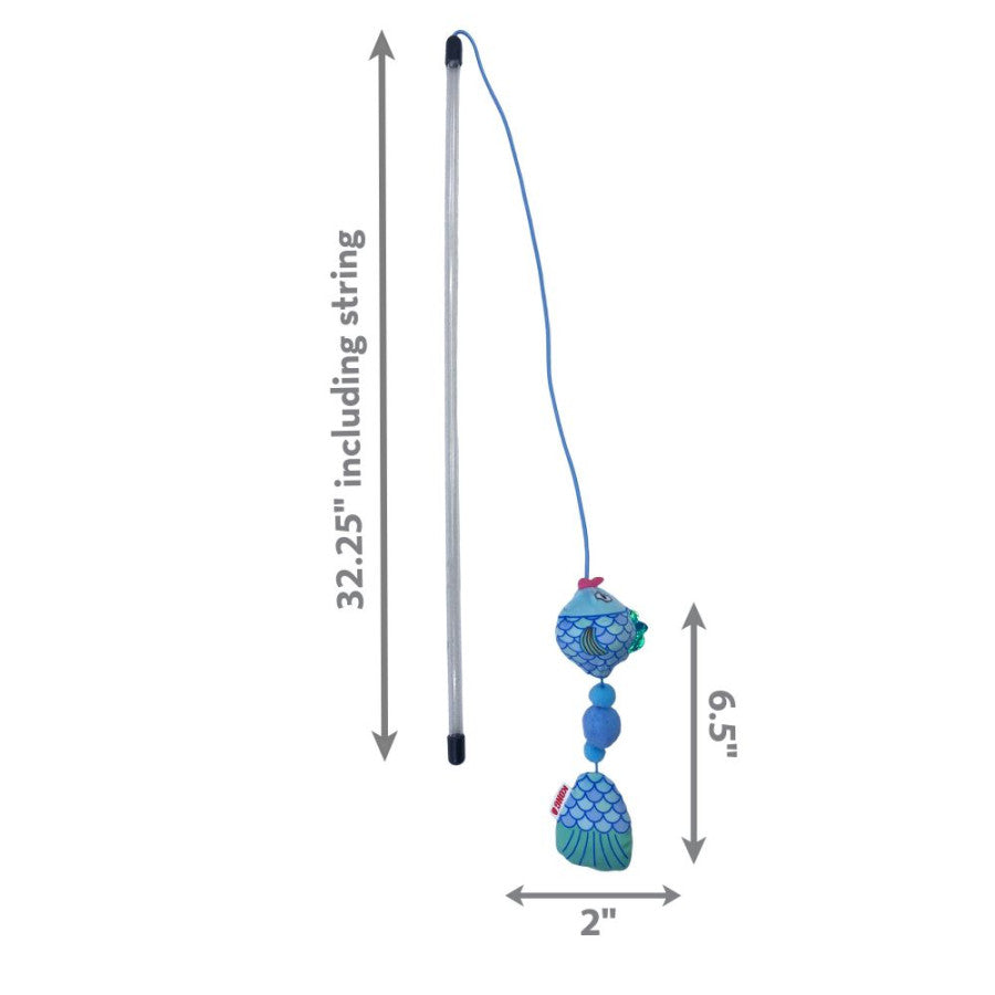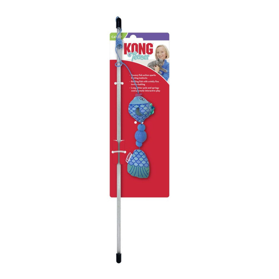 KONG Teaser Scrattles Fish keeps cats on the hook with a rattling, dangling fish with bouncing action that sparks natural hunting instincts. The long glitter pole and elastic cord promote interactive play. The fish’s crinkly fins and long body invite batting while KONG Premium North American Catnip inside prolongs the fun.