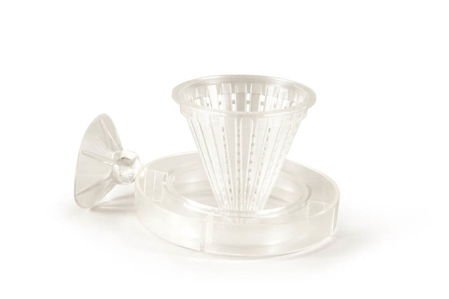 The 4-way Cone Worm Feeder is made up of three separate pieces;a floating ring,a cone worm feeder,and a suction cup.The floating ring may be used to provide dry food while floating on the surface or, when used in conjunction with the suction cup, it may be attached to the side wall of the aquarium to restrict feeding to a certain area.In addition, when inserting the cone, it may be used as a free-floating or confined worm feeder.