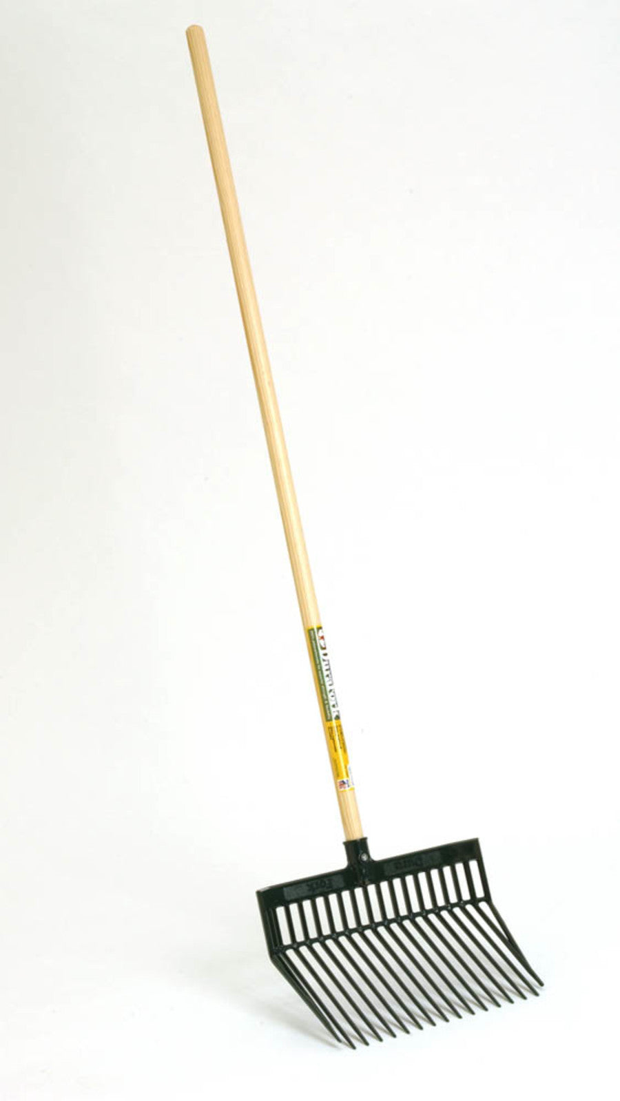 Manufactured from extra strong polycarbonate to provide strength and enhanced flexibility. Designed for long- lasting use around the farm ranch and home. Specially designed tines are uniquely angled to provide easy manure pickup with less spilling. Nylon locknut secures handle. The original Durafork with 52 inch handle. Fork head is 13 1/8 inch long and 15 1/8 inch wide.