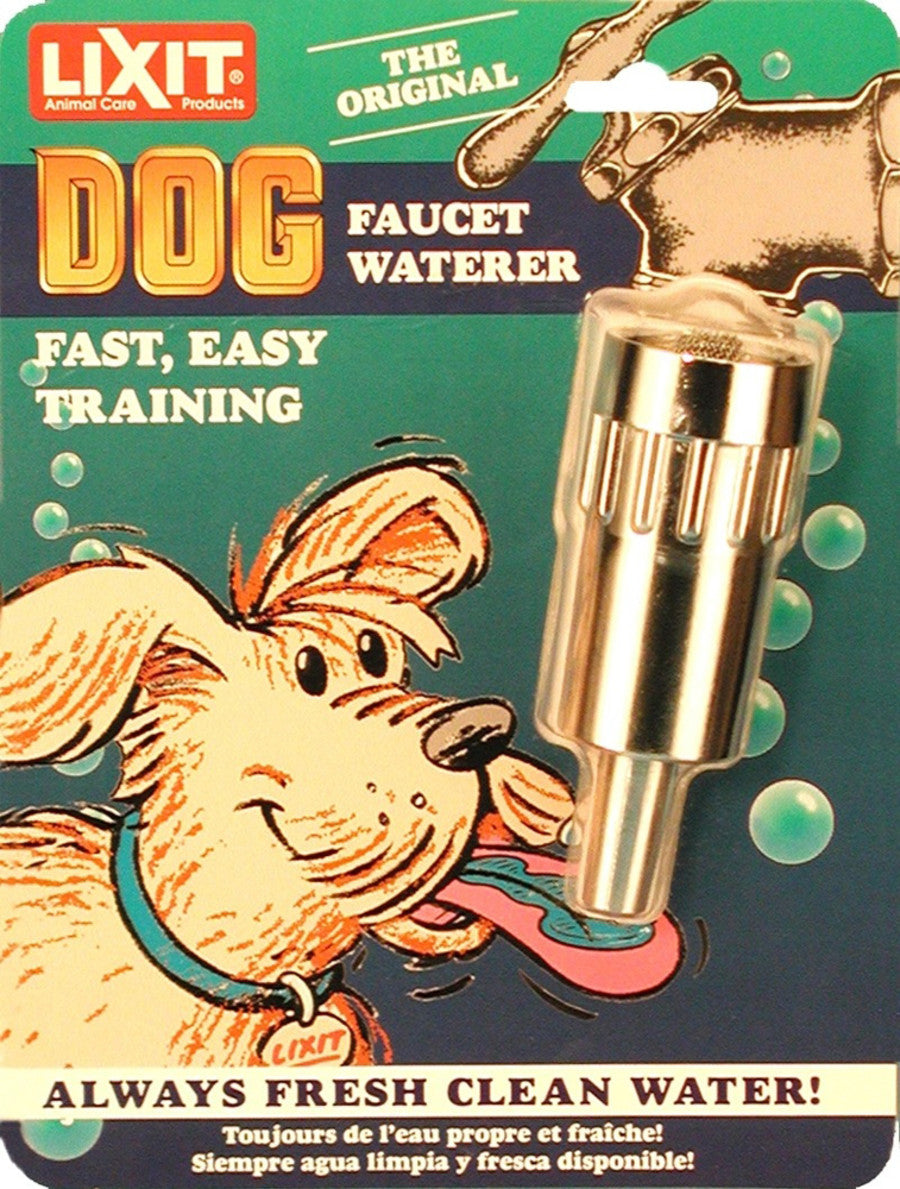 - Use Instructions: Screw your dog waterer onto an outdoor faucet. Turn on the faucet all the way and press on the lever to show your dog how it works. Your dog will see the water come out and start drinking. If your dog does not start drinking immediately, help your dog learn by unscrewing the waterer from the faucet just enough so water trickles from the threads down over the waterer. This should attract your dog. Be sure to remove other sources of water. After several hours, demonstrate for your dog again. You can also smear some peanut butter or soft cheese on the lever to encourage your dog to lick it and activate the waterer. Once your dog is trained, be sure to tighten the waterer onto the faucet.