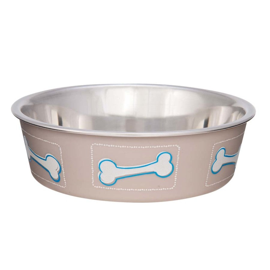 The award winning, patented and BEST SELLING PET Dish LINE in the pet industry just got even better with these new patterns and colors. Bella Dishs are the PERFECT PET DISH featuring vet-recommended stainless steel interiors with an attractive poly-resin exterior. The removable rubber base prevents skids and spills, eliminates noise. Dishwasher safe, just remove the no skid rubber base. 6 new Coastal colors and 2 Cosmopolitan colors. All available in 4 sizes. White marquis surrounds white bones with a dark pink outline set on a pastel pink background.