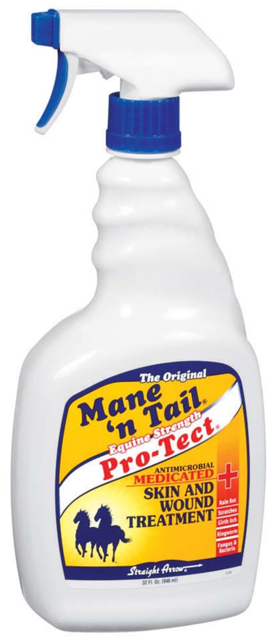 Rain rot, scratches, girth itch, ringworm, fungus & bacteria. The original mane 'n tails pro-tect antimicrobial medicated skin & wound treatment is a deep penetrating therapeutic formula that goes beyond other simple antifungal and antibacterial products. It provides unsurpassed topical treatment for skin and wound problems. Pro-tect is a gentle, safe and effective solution that does not irritate or stain. Formulated with skin conditioning emollients that promote faster healing. Compare this advanced formula to any on the market today, the results will speak for themselves.