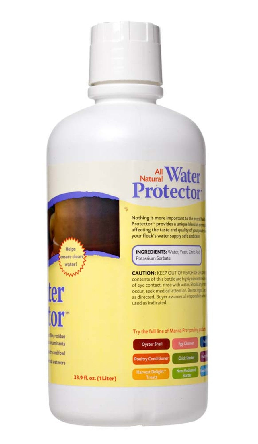 Nothing is more important to the overall health of your flock than clean, clear water. Manna Pro® Water Protector provides a unique blend of enzymes that stop film, residue and natural contaminants from affecting the taste and quality of your poultry's water. Water Protector is an all-natural solution for keeping your flock's water supply safe and clean. Available in a 16 oz. Concentrate.