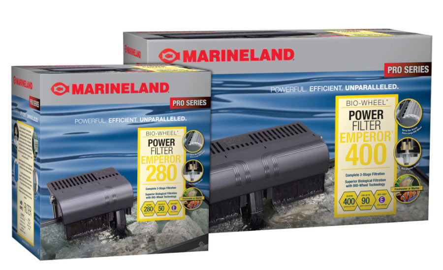Emperor Filter Systems are advanced aquarium technology at its finest. With a revolutionary two-pump design, flow and filtration efficiencies of the Emperor's are unmatched by other filters in their class. Featuring as much as twice the filter cartridge capacity, additional chemical filtration capability, and extra large, spray bar-driven Bio-Wheel wet/dry biological filtration, Emperor Filter systems offer the aquarist a filtration system that can stand up to any aquarium they can dream of. This unit is for aquariums from 50 to 80gallons and uses Rite-Size inEin fliter cartridges.