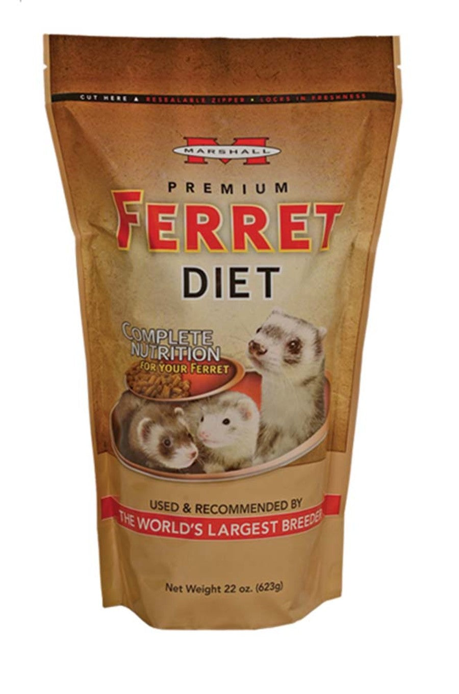 - Feeding Instructions: Ferrets of all ages should have food and fresh water available at all times.Young Ferrets (6 - 11 weeks old): It is important at this age to sufficiently moisten the diet for your young ferret. Mix 3 parts warm fresh water to 1 part Marshall Diet (3:1 ration). Allow the mixture to sit for 3 - 5 minutes. Add more Marshall Diet or water until it reaches a wet oatmeal consistency. Keep some dry diet available at this age so your ferret will adjust to a completely dry diet by the time it is 12 - 13 weeks of age.Adolescent and Adult ferrets (12 weeks and older): By now, your ferret should have converted to the dry diet. Keep fresh water and Marshal Diet available at all times.