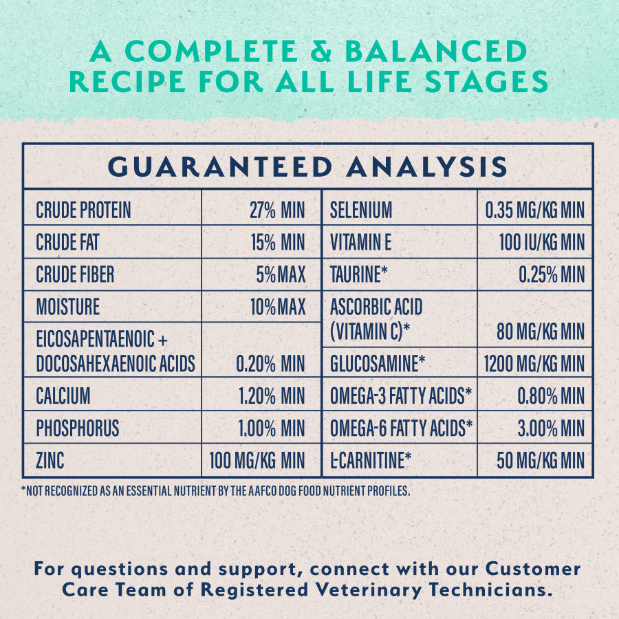 - Ingredients: Chicken;Chicken Meal;Pearled Barley;Peas;Oat Groats;Chicken Fat (Preserved with Mixed Tocopherols);Dried Plain Beet Pulp;Natural Flavor;Brown Rice;Dicalcium Phosphate;Flaxseed;Dried Vegetable Broth;Menhaden Fish Oil (Preserved with Mixed Tocopherols);Carrots;DL-Methionine;Potassium Chloride;Salt;Taurine;Vitamins (Vitamin E Supplement;Ascorbic Acid;Niacin Supplement;Vitamin A Supplement;Thiamine Mononitrate;d-Calcium Pantothenate;Riboflavin Supplement;Pyridoxine Hydrochloride;Vitamin B12 Supplement;Folic Acid;Vitamin D3 Supplement;Biotin);Dried Tomato Pomace;Minerals (Zinc Proteinate;Zinc Sulfate;Ferrous Sulfate;Iron Proteinate;Copper Sulfate;Copper Proteinate;Sodium Selenite;Manganese Sulfate;Manganese Proteinate;Calcium Iodate);L-Ascorbyl-2-Polyphosphate;L-Tryptophan;L-Threonine;Choline Chloride;Citric Acid (Preservative);Mixed Tocopherols (Preservative);Blueberries;Dried Kelp;Spinach;Cranberries;Yucca Schidigera Extract;L-Lysine Monohydrochloride;L-Carnitine;Rosemary Extract.