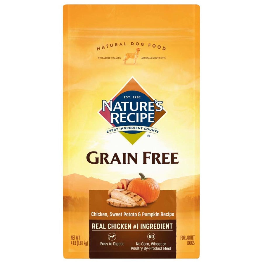 Nature's Recipe Grain Free Easy to Digest Chicken, Sweet Potato & Pumpkin Recipe dry dog food offers exceptional quality with real chicken as the #1 ingredient. Made with all-natural ingredients, including healthy sweet potatoes and pumpkin, plus added vitamins, minerals and nutrients to help your dog thrive. And none of the extras: no corn, wheat, or soy, and no artificial colors,flavors or preservatives. For over 30 years, Nature's Recipe has been providing pets with ideal nutrition drawn from nature's inherent goodness.