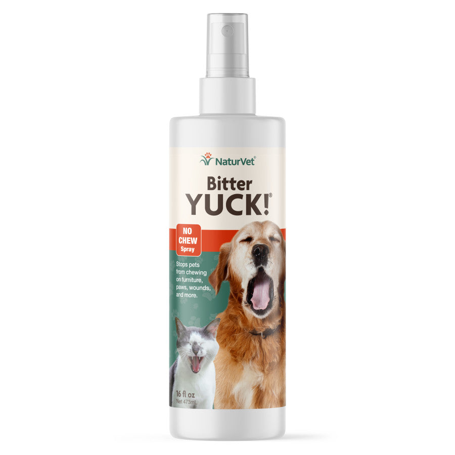 NaturVet Bitter YUCK! No Chew Spray stops dogs from chewing on furniture, paws, tails, manes, wounds, bandages, hot spots, wood, and more!