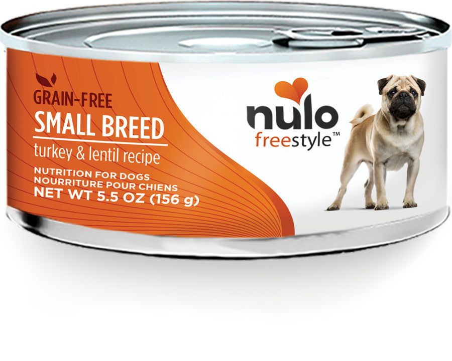 Nulo Freestyle Turkey & Lentils Grain Free Canned Small Breed Dog food is specially formulated for small breeds and made with real turkey and turkey liver, plus wholesome lentils and sweet potatoes. And it’s made without corn, wheat or soy, perfect for furry friends with sensitivities. Use this tasty recipe as a primary diet for your precious pup or as a tasty topper over dry kibble. Comes in smaller portion sizes for small breed dogs L-carnitine supports the metabolisms of fats to help your dog maintain a healthy weight Real turkey is naturally rich in amino acids to support a healthy heart and lean muscle mass Pea fiber and inulin work together to support a healthy digestive system Made without corn, wheat, soy or artificial colors, preservatives, or flavors