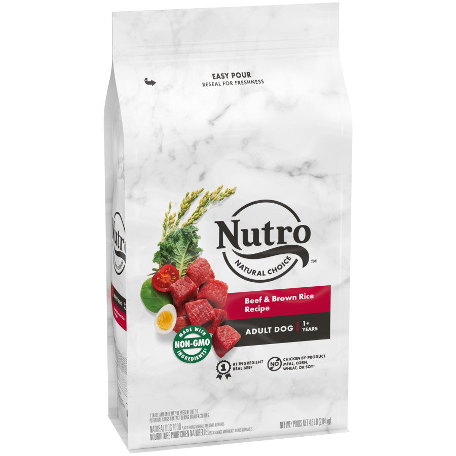 - Contains one (1) 4.5 lb. bag of NUTRO NATURAL CHOICE Adult Dry Dog Food, Beef & Brown Rice Recipe for dogs 1 year and older; real beef is the #1 ingredient
