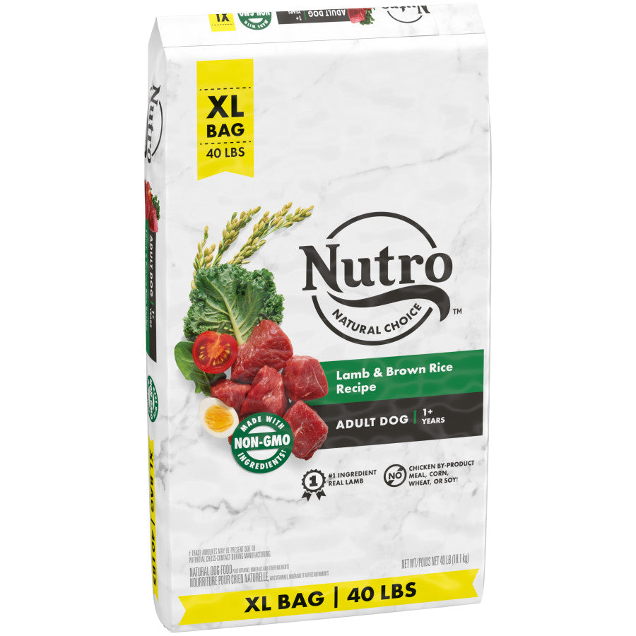 - Contains one (1) 40 lb. bag of NUTRO NATURAL CHOICE Adult Dry Dog Food, Lamb & Brown Rice Recipe for dogs 1 year and older; real lamb is the #1 ingredient