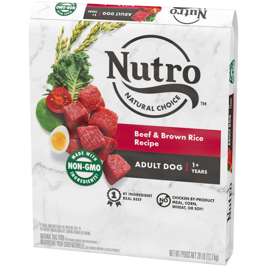 - Contains one (1) 28 lb. bag of NUTRO NATURAL CHOICE Adult Dry Dog Food, Beef & Brown Rice Recipe for dogs 1 year and older; real beef is the #1 ingredient