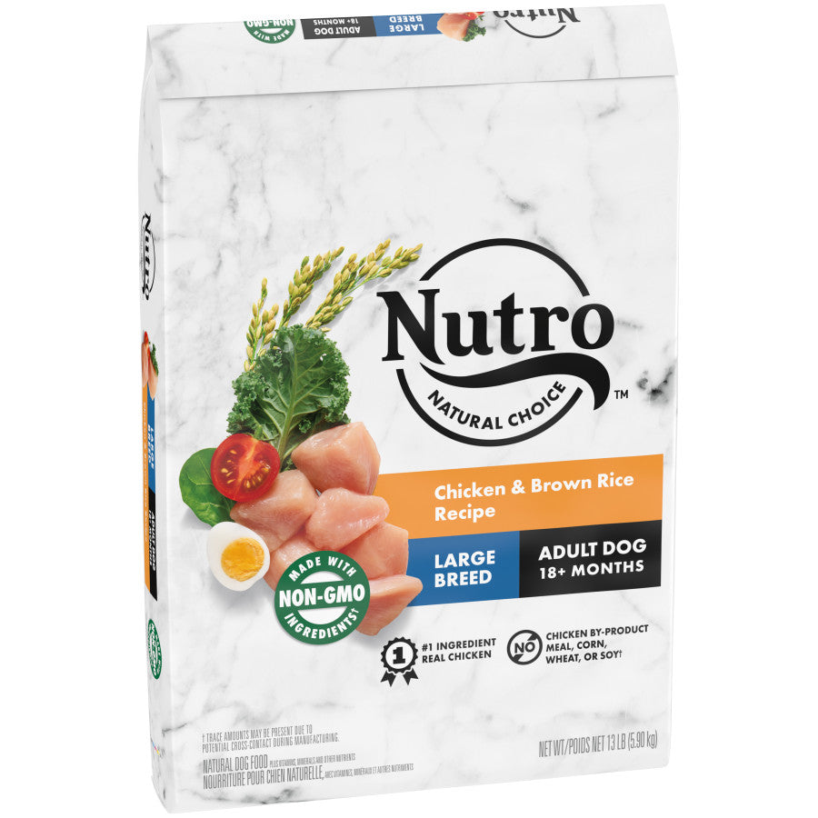 - Contains one (1) 13 lb. bag of NUTRO NATURAL CHOICE Large Breed Adult Dry Dog Food, Chicken & Brown Rice Recipe for large breed dogs ages 18 months and older; real chicken is the #1 ingredient