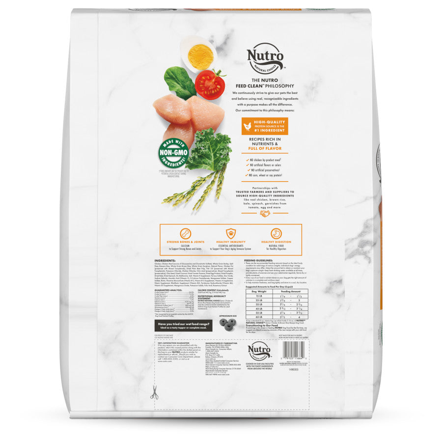 - Contains one (1) 30 lb. bag of NUTRO NATURAL CHOICE Senior Dry Dog Food, Chicken & Brown Rice Recipe for senior dogs ages 7 and older; real chicken is the #1 ingredient